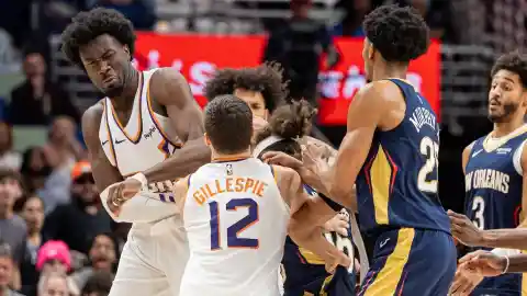 The change has made it much rarer to see players fight on the court. It hasn’t eradicated it, though. Which is why when Jose Alvarado and Mark Williams got in a tussle that actually included punches, it was pretty surprising.